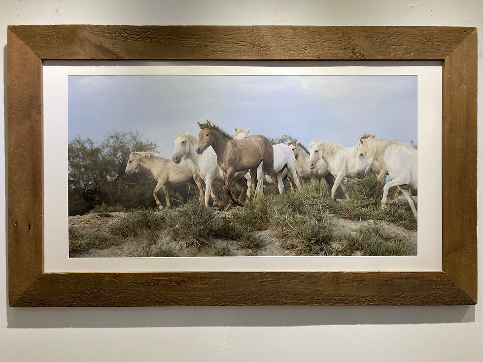Using her “astute photographer’s eye and intuitive painter’s vision,” Testwuide creates large, dramatic masterpieces framed in reclaimed barn wood.